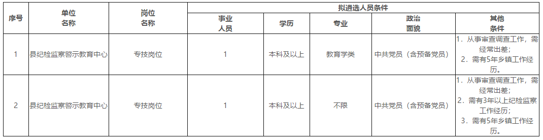 本次计划公开遴选2名事业编制人员。具体岗位如下: